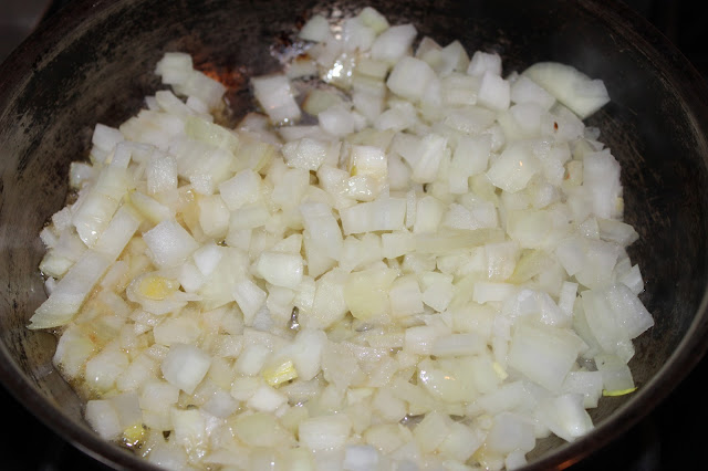 Cook the chopped onions.