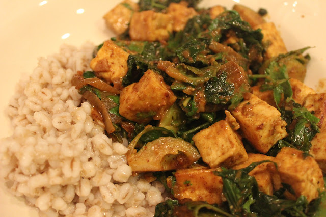 We ate this dinner with some cooked barley (rice, quinoa, couscous are all good accompaniments) and had a salad as well.