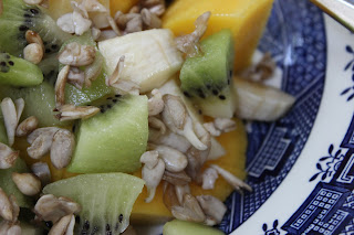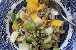 Last week I sprouted some sunflower seeds.  Sprinkled on freshly cut fruit – what could be better!