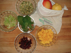 When the quinoa is at room temperature add the prepared mango, celery, mint and cranberries. Combine the dressing ingredients in a small bowl, whisk it all together and poor over the combined salad. Stir thoroughly. Fold in the pumpkin seeds at the time of serving. Letting the salad sit for 30 minutes enhances the flavors.